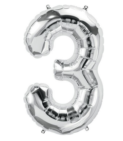 Number 3 Silver 34" Foil Balloon